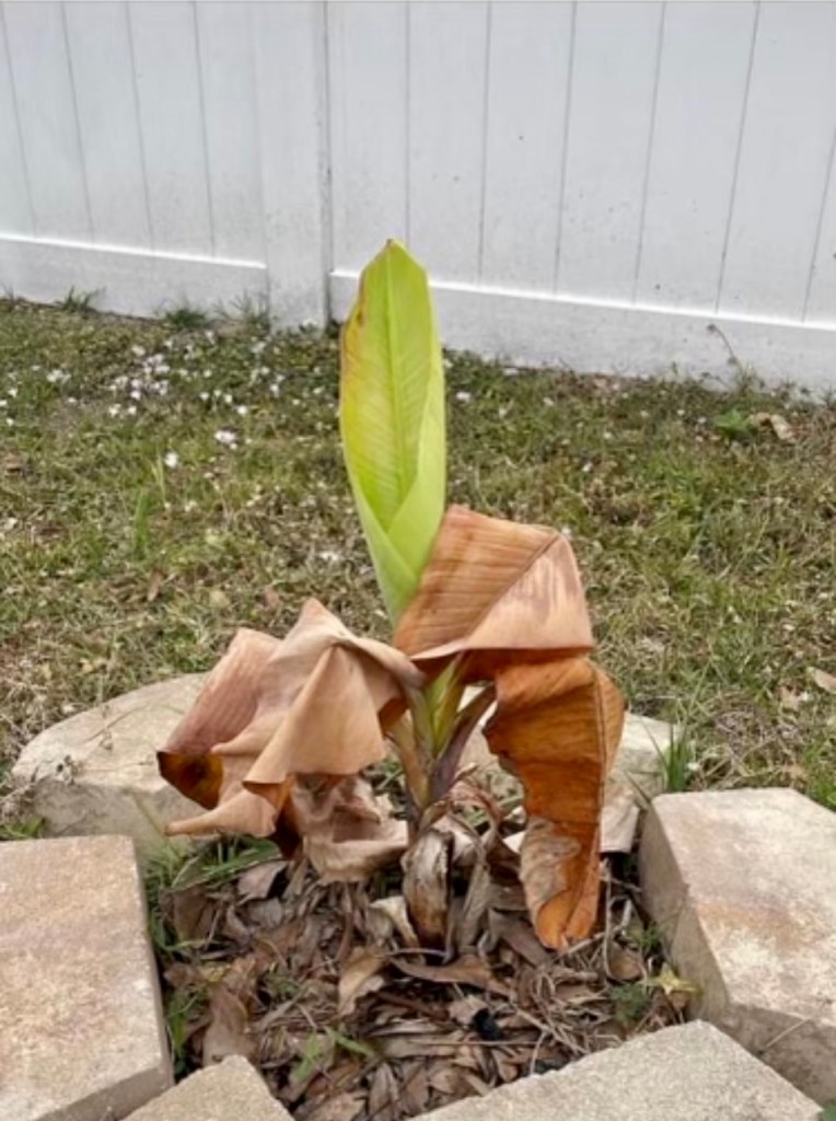 Recently at church, one of the worship leaders showed a picture that really ignited hope within me. He told the story of how his father gave him a banana plant. He took great care of it and became quite attached as he saw it develop from a seedling to a fruitful plant. Then one day a frost came. The poor banana plant could not take the cold and it turned black and the leaves fell off. He was devastated. All that tender loving care and the plant was now dead. Or at least it looked that way. His wife saw how crushed he was and sent him a picture from Florida Backyard Gardening that you’ll see below.