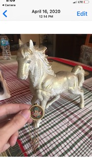 In April of 2020 I was sitting at the table in my mother’s house when I saw a beautiful ceramic white horse displayed in her china cabinet. I remember seeing the horse as a child, but I never asked where it came from. The horse always reminded me of Jesus’ white horse that he rides in Revelation 19 when he returns at the Second Coming. His Bride is with him of course. Anyway, when I saw the ceramic horse in 2020 I really wanted to take it home. I went to the china cabinet and picked it up. To my surprise, wrapped around its neck, was a necklace.