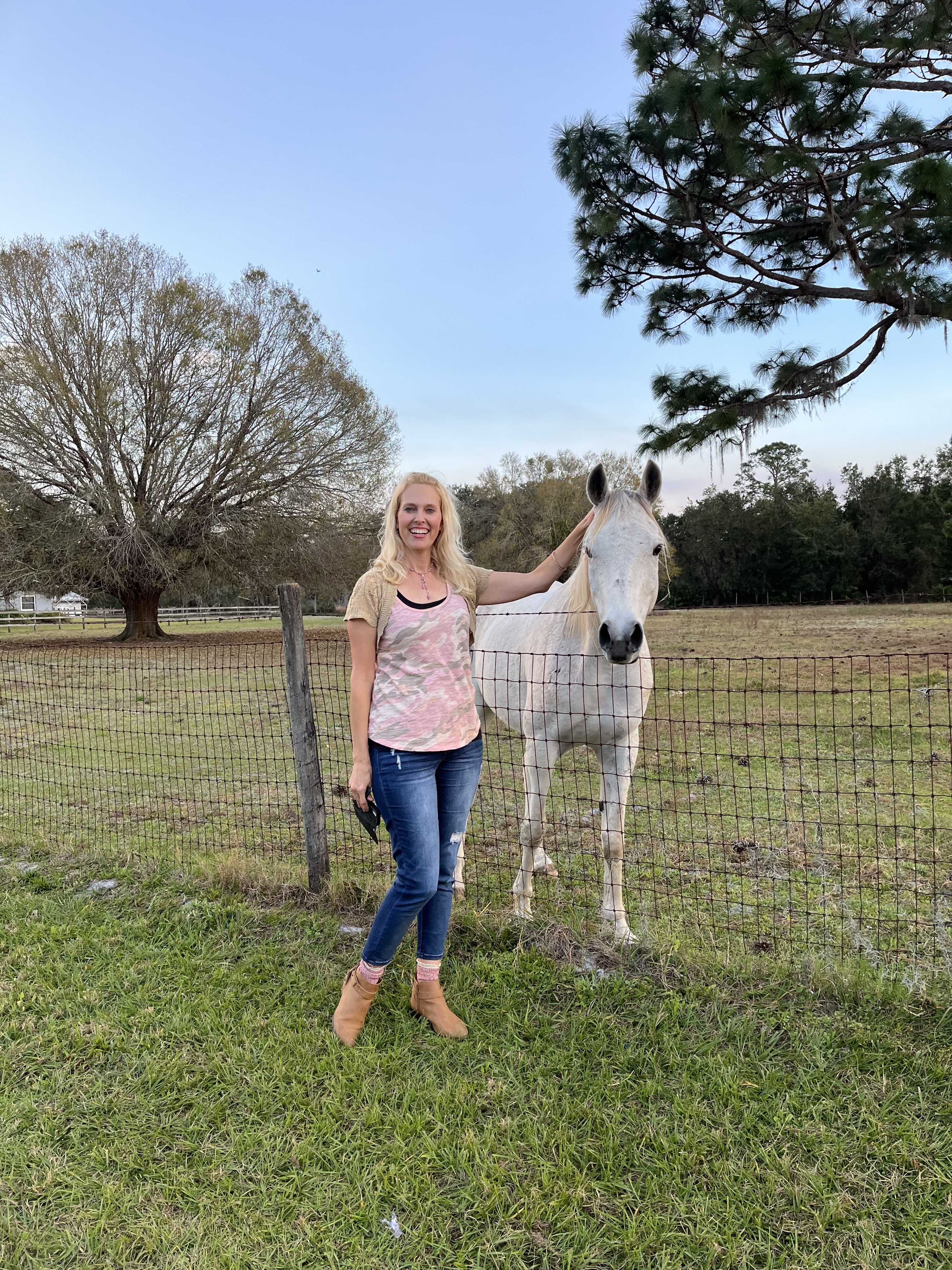 Over the course of writing the book, Hallelujah came to life for me and I became very attached to the idea of this amazing creature. One day, my best friend Karen surprised me! She said, “Angela, there’s a beautiful white horse who lives right near my house!” Immediately I went to see the horse. Here are some pics below: