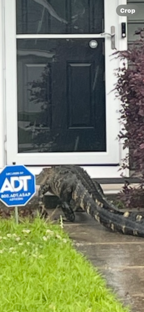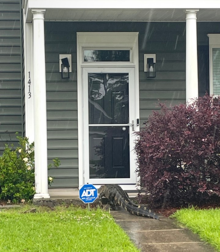 Do you see what I see? An alligator is at the door of somebody’s home! Actually, my son sent me this picture last month as he was driving up to his house. The alligator was at his neighbor’s door!